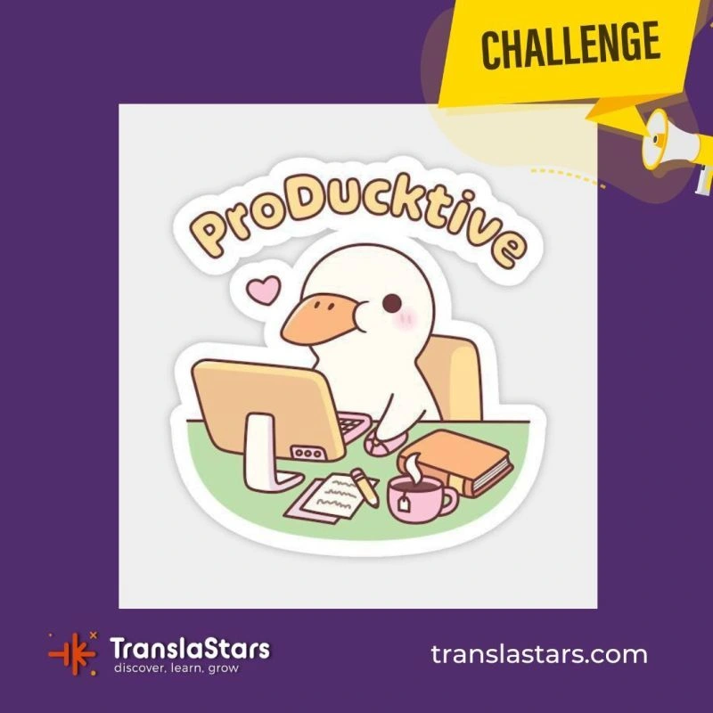 TranslaStars posted a challenge last week. The image: a cute duck sitting at a desk, working away.